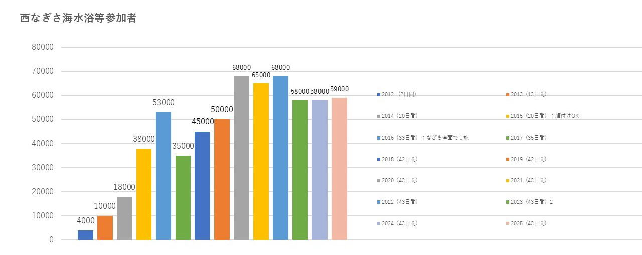 ( 遊泳ゾーンを西なぎさ全面に拡大、33日間の海水浴)